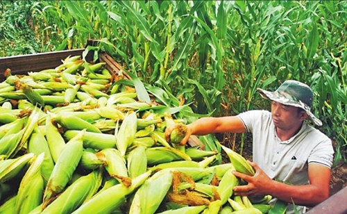 北大荒哈爾濱現(xiàn)代服務(wù)有限公司紅旗分公司騰碩達(dá)農(nóng)業(yè)發(fā)展有限公司工人正在采收青玉米。
