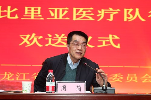 周簡書記代表國家衛(wèi)生健康委,以“再武裝、再出發(fā)、再戰(zhàn)斗”為題,從思想準備、組織準備、技術(shù)準備、物資準備等四個方面向醫(yī)療隊寄語。他指出,中國對外衛(wèi)生援助淵遠流長,在半個多世紀的時間里,黑龍江省共派出1030人次醫(yī)務(wù)工作者參與了援外醫(yī)療工作,積極踐行國際人道主義精神,勇于克服種種困難,砥礪前行,為受援國留下了“帶不走的醫(yī)療隊”。醫(yī)療隊促進了當?shù)蒯t(yī)療衛(wèi)生事業(yè)的發(fā)展,有力地支持了我國的外交工作,為推進人類和平與發(fā)展的崇高事業(yè)做出了貢獻。當前,面對全球肆虐的新冠肺炎疫情,中非合作抗疫刻不容緩,醫(yī)療隊員面臨的任務(wù)更艱巨,但是使命光榮。