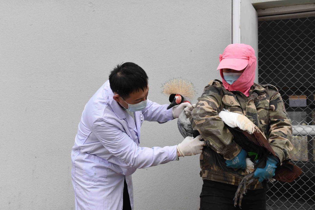 動物醫(yī)生為園內(nèi)鳥類進行體檢