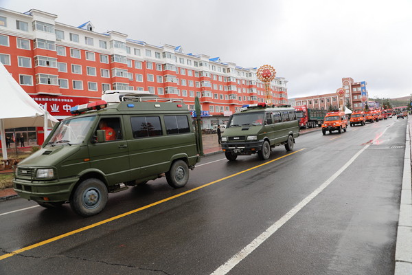 9時(shí),反思活動(dòng)正式開始。林業(yè)局處級(jí)領(lǐng)導(dǎo)與職工群眾鄭重地在在“牢記歷史 汲取教訓(xùn) 振奮精神 開拓進(jìn)取 建設(shè)美麗藍(lán)莓小鎮(zhèn)”宣傳條幅上,鄭重地簽上了自己的名字。并舉行了聲勢(shì)浩大的人員游行、車輛游行。由運(yùn)兵車、運(yùn)兵車、人工增雨車等26臺(tái)特種車輛,拉響警報(bào),緊跟在由森林消防大隊(duì)組成的100余人步行方陣后,他們身穿防火戰(zhàn)斗服,手舉寫有“‘五?六’反思”巨型防火宣傳牌和防火宣傳彩旗,尤其是手執(zhí)高速渦流噴射滅火機(jī)、脈沖槍、斯蒂爾風(fēng)力滅火機(jī)的隊(duì)員,邁著整齊的步伐,喊著響亮的口號(hào),立即吸引了過往的居民的注意,成為最亮眼的“明星”。