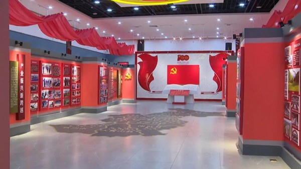 展廳中央懸掛著鮮艷的中國(guó)共產(chǎn)黨黨旗。在趙萬(wàn)山領(lǐng)誓下,大家面對(duì)黨旗,舉起右手,重溫入黨誓詞。