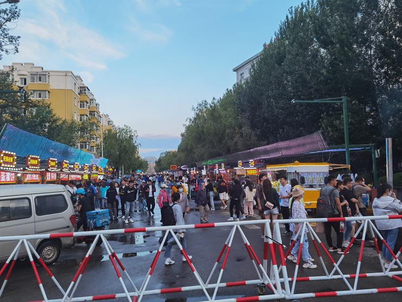 夜市內(nèi)還有警車值守。民強(qiáng)派出所的郝警官說,她在老太平居住了近50年,目睹了各色夜市的興衰,這夜市是最大也是最好的小吃夜市,肯定會生存發(fā)展下去。“今年4月就開始試運(yùn)營了吧,5月初正式營業(yè),管理比較規(guī)范。是道外區(qū)城管局和民強(qiáng)街道辦的招標(biāo)項(xiàng)目,是政府引導(dǎo)和規(guī)劃的夜經(jīng)濟(jì)發(fā)力點(diǎn)。”