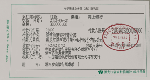 為更好地支持塔河縣應(yīng)對(duì)汛情,戰(zhàn)勝洪災(zāi), 6月21日,塔河農(nóng)商銀行在上級(jí)銀行的大力支持下,簡化手續(xù),特事特辦,第一時(shí)間向塔河縣人民政府捐贈(zèng)救災(zāi)款項(xiàng)30萬元,用于塔河縣抗洪救災(zāi)工作,奉獻(xiàn)了農(nóng)商銀行廣大干部職工的一份愛心。