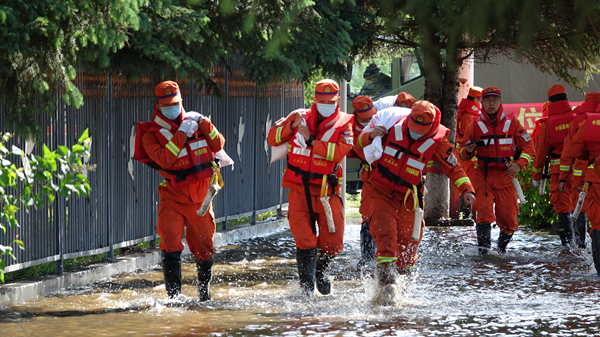 18日凌晨,記者在位于塔河鎮(zhèn)中央大街東端的塔河農(nóng)商銀行機(jī)關(guān)辦公樓前看到,漲勢(shì)很快的洪水正迅猛地漫過中央大街,向街邊的農(nóng)商銀行機(jī)關(guān)大樓、稅務(wù)局辦公樓和電視臺(tái)辦公樓等處涌來,而這幾個(gè)沿街單位地勢(shì)較低,很容易受到洪水的侵襲。為盡量控制洪水水勢(shì),最大限度減少洪水造成的損失,塔河縣防指迅速調(diào)集人力物力,主要領(lǐng)導(dǎo)靠前指揮,廣大救援官兵奮勇爭先,在幾個(gè)臨街單位外圍用沙袋圍壩攔堵,并調(diào)動(dòng)多臺(tái)高壓水泵抽水抗?jié)?,給幾個(gè)單位的救援提供了極大地助力,也為其自救創(chuàng)造了更多的時(shí)機(jī)。