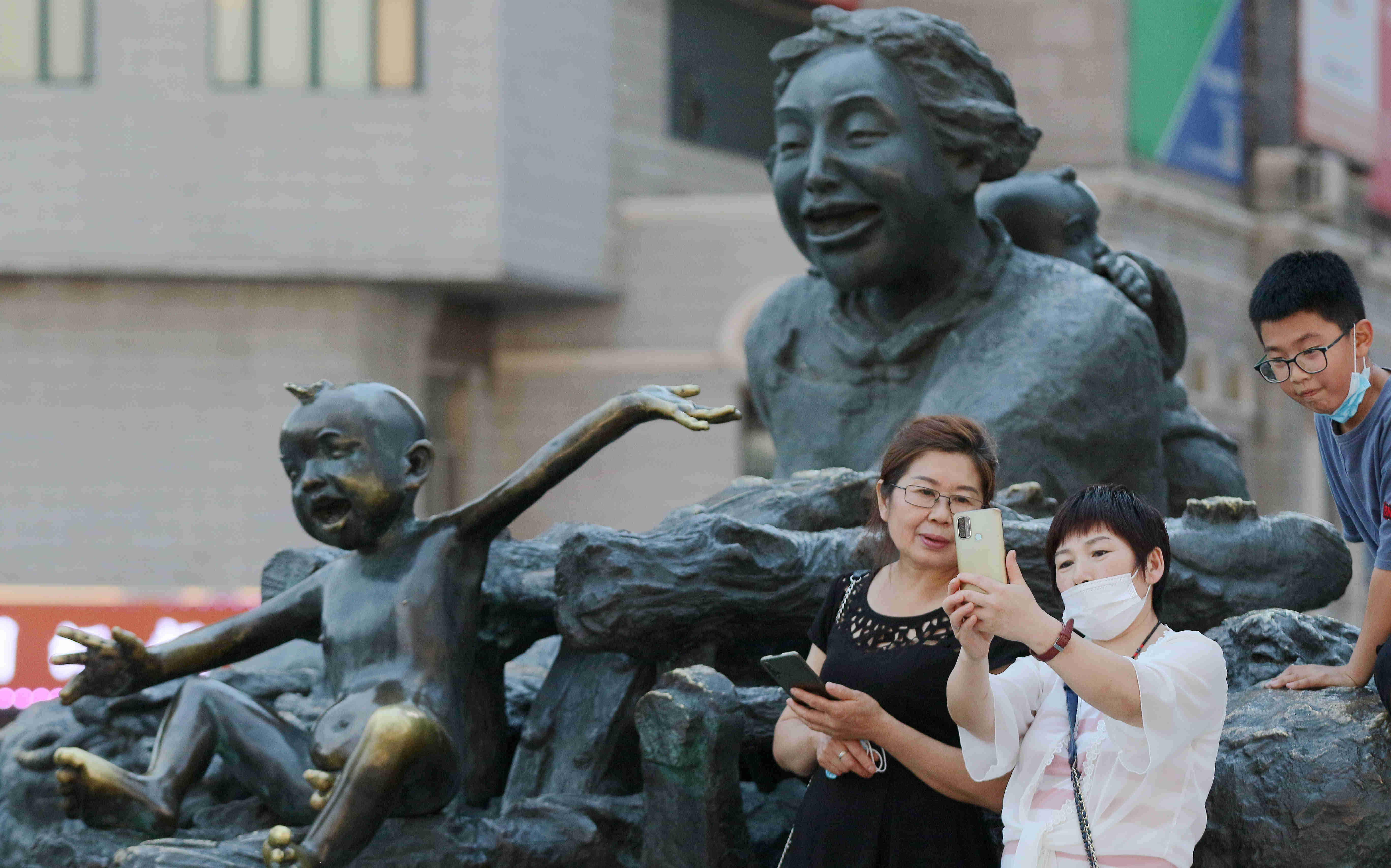 闖關(guān)東塑像前