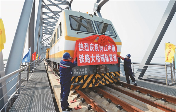 同江中俄黑龍江鐵路大橋鋪軌貫通