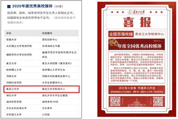 據(jù)了解,在此次全國百強(qiáng)校園媒體評比中,黑龍江大學(xué)新聞中心位列前40,獲評“2020年度全國優(yōu)秀高校媒體”稱號,創(chuàng)造了該校參評以來的最好成績。