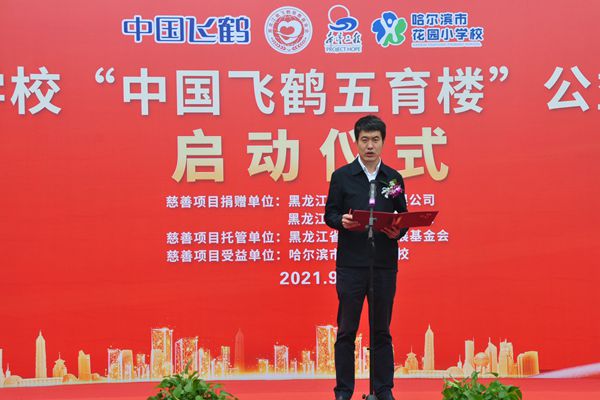 飛鶴乳業(yè)黨委書記、飛鶴慈善基金會理事長朱天龍在啟動儀式上說,在中秋國慶即將到來之際,我們滿懷喜悅的心情,在百年名校哈爾濱市花園小學(xué)校舉行“中國飛鶴五育樓”公益慈善助教項目啟動儀式,這是飛鶴乳業(yè)履行社會責(zé)任、情系教育事業(yè)的又一項助教工程。在黑龍江省貫徹落實(shí)黨中央“雙減”政策,深入推進(jìn)五育并舉,促進(jìn)學(xué)生德智體美勞全面發(fā)展的重要時期。飛鶴向哈爾濱市花園小學(xué)捐贈625萬元,用于花園小學(xué)“五育樓”項目改造,這是一項利在當(dāng)代,功在千秋的公益慈善助教項目,旨在更好地優(yōu)化我省基礎(chǔ)教育教師學(xué)習(xí)培訓(xùn)環(huán)境,為花園小學(xué)教學(xué)提供更好的辦學(xué)條件,也是助力黑龍江省基礎(chǔ)教育的改革。省教育廳副廳長姜同河、團(tuán)省委副書記張濤對飛鶴乳業(yè)的慈善助教善舉給予充分的肯定和贊許?;▓@小學(xué)校長曹永鳴代表學(xué)校的孩子們向飛鶴乳業(yè)的慈善捐助表達(dá)深深的謝意!