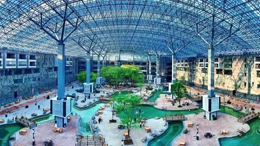 五大連池火山溫泉水世界是黑龍江省北部最大的室內(nèi)水上娛樂項(xiàng)目,總占地面積15.2萬(wàn)㎡?;鹕綔厝澜缡且詼厝B(yǎng)生文化為主題,以火山為主要元素的園林式水上樂園。對(duì)游樂設(shè)施進(jìn)行文化植入、主題化包裝,建成集特色溫泉水上游樂、餐飲娛樂、休閑購(gòu)物和旅游觀光于一體的室內(nèi)水上娛樂及溫泉養(yǎng)生綜合體。