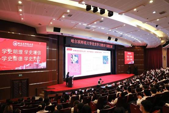領(lǐng)導(dǎo)帶頭做表率,推動黨史學(xué)習(xí)教育往“深”里學(xué)。通過專題讀書班、集體參觀中共黑龍江歷史紀念館、中心組學(xué)習(xí)會等形式,學(xué)校領(lǐng)導(dǎo)班子帶頭學(xué)思悟踐、做示范表率。師生聆聽中央宣講團宣講報告會、省委黨校黨史學(xué)習(xí)教育專題講座。學(xué)校深入挖掘校史中的紅色基因,建設(shè)開放校史館,引導(dǎo)廣大師生從黨史視角了解學(xué)校歷史,在校史中學(xué)習(xí)黨史知識。