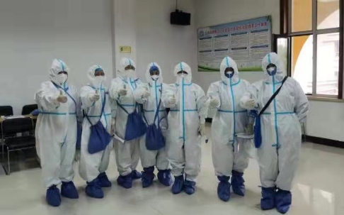 自2020年1月感染內(nèi)科全體醫(yī)護(hù)承擔(dān)起發(fā)熱門診此項(xiàng)艱巨任務(wù),一樓設(shè)立為發(fā)熱門診留觀室,二樓為核酸未出結(jié)果者緩沖病房,三樓、四樓為核酸陰性但尚未解除隔離的留觀病房。此次根據(jù)疫情防控要求,在原本樓層多,醫(yī)護(hù)工作“戰(zhàn)線”長的情況下,還特別設(shè)立了“巴彥”疫區(qū)專屬樓層。來自風(fēng)險(xiǎn)區(qū)患者就診時(shí),在隔離區(qū)的一名醫(yī)生和一名護(hù)士每個(gè)班次經(jīng)常工作6-8小時(shí),樓上樓下的反復(fù)奔走,裹著密不透氣的防護(hù)服,汗水濕透衣背。長時(shí)間的不能喝水吃飯如廁,挑戰(zhàn)人體生理忍耐極限,但從未有人叫苦委屈。白班的同志在結(jié)束日間工作后,為了解決科室人員少,且工作量大的情況,主動留下加班到很晚,而第二天還要支援社區(qū)全員核酸采集任務(wù)。