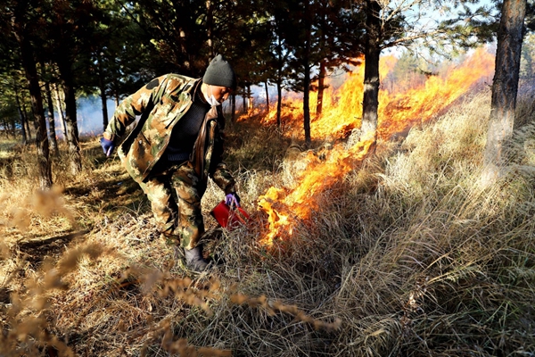 圖為阿木爾林業(yè)局森林消防大隊專業(yè)撲火隊員點燒秋季戰(zhàn)略防火隔離帶。王力 攝
