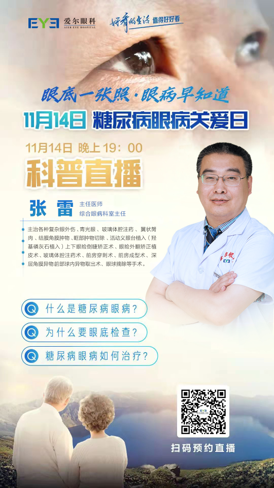 為提高糖尿病患者對糖尿病眼病的認(rèn)知、加強自我保健意識,雞西愛爾眼科醫(yī)院將11月14日晚19:00舉辦糖尿病眼病關(guān)愛視頻號直播,通過科普講座與答疑互動的方式,全面講解糖尿病眼病的相關(guān)知識,幫助您和家人解決眼健康煩惱。
