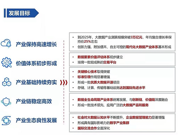 規(guī)劃明確,到2025年,大數(shù)據(jù)產(chǎn)業(yè)測算規(guī)模突破3萬億元。其中特別提出,數(shù)據(jù)要素價值評估體系初步建立;產(chǎn)業(yè)基礎(chǔ)持續(xù)夯實,關(guān)鍵核心技術(shù)取得突破;形成一批技術(shù)領(lǐng)先、應用廣泛的大數(shù)據(jù)產(chǎn)品和服務。