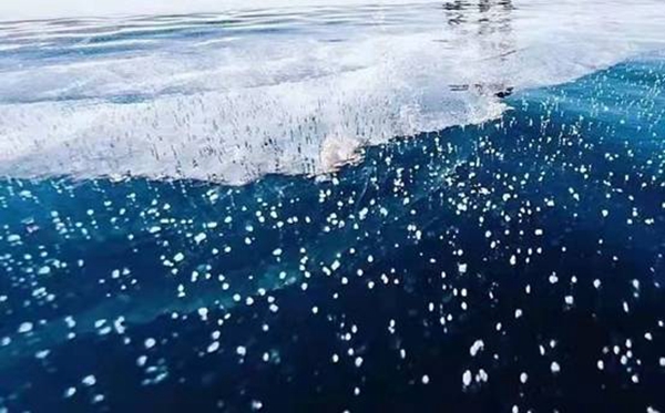 “冰泡”是由湖底植物釋放出的沼氣(甲烷)在上升過(guò)程中,因極寒氣溫導(dǎo)致冰封速度過(guò)快,被“鎖”在冰層之中而形成。目前,全世界僅有3個(gè)著名的冰泡湖,北極漠河冰泡湖是中國(guó)最北唯一的“冰泡奇觀”。觀音山“冰泡”晶瑩剔透、造型奇特、惟妙惟肖,有的形似“飛碟”一飛沖天,有的形似“珊瑚”美輪美奐,有的形似“觀音”端坐蓮臺(tái)。形態(tài)各異的“冰泡”形成一幅幅精美的冰雪藝術(shù)畫卷,成為漠河冬季最火爆的網(wǎng)紅打卡地。