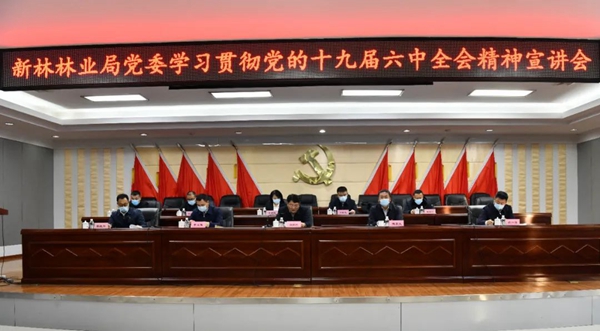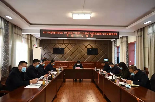 組織部署先行,推動全局貫徹“一盤棋”。新林林業(yè)局黨委第一時間召開部署會議,研究貫徹落實措施,召開理論學習中心組(擴大)會議,學習《中國共產黨第十九屆中央委員會第六次全體會議公報》精神,并集體收看黨的十九屆六中全會新聞發(fā)布會。印發(fā)《新林林業(yè)局黨的十九屆六中全會精神學習宣傳工作實施方案》《新林林業(yè)局學習貫徹黨的十九屆六中全會精神宣教工作方案》等文件,要求各單位科學組織,通過線上與線下、自學與集中學相結合等多種方式,開展學習研討,不斷提高政治站位;各基層單位積極行動,精心安排部署,結合單位實際,立足“學懂、弄通、做實”的要求,通過“讀書班”、“三會一課”、“主題黨日”、集中研討等形式,切實把學習成效轉化為工作動力,推動各項工作部署落地見效。截至目前,全局開展集中學習