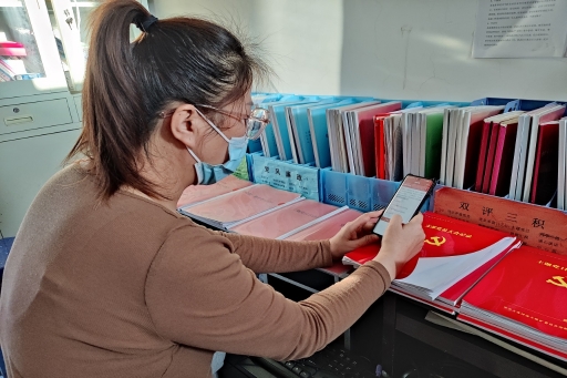 職工在礦自辦“霍拉盆先鋒 智慧黨建平臺(tái)”進(jìn)行黨的十九屆六中全會(huì)精神知識(shí)測(cè)試(李云田 攝)