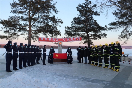 呼瑪縣素有紅色邊疆的美譽(yù),共建聯(lián)盟前往呼瑪縣江邊第173號界碑,在莊嚴(yán)的黨旗和界碑下,呼瑪縣森林消防大隊(duì)黨委書記苗亮亮帶領(lǐng)全體黨員同志重溫了入黨誓詞,舉行集體宣誓儀式,旨在進(jìn)一步強(qiáng)化廣大應(yīng)急人的政治意識,增強(qiáng)黨性觀念,筑牢政治忠誠,永葆紅色氣質(zhì)。