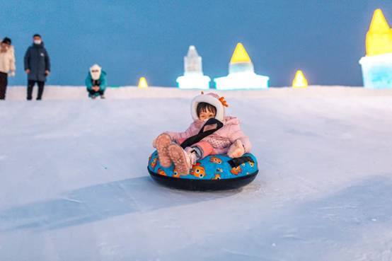 冰雪大世界園區(qū)帶給游客速度與激情的項(xiàng)目還有雪圈,家長和孩子可以一同玩耍,處處充滿歡聲笑語。今年的雪圈分為兒童雪圈和趣味雪圈,無法乘坐大滑梯的孩子們可以在兒童雪圈感受飛一般的速度,絕對(duì)不虛此行。
