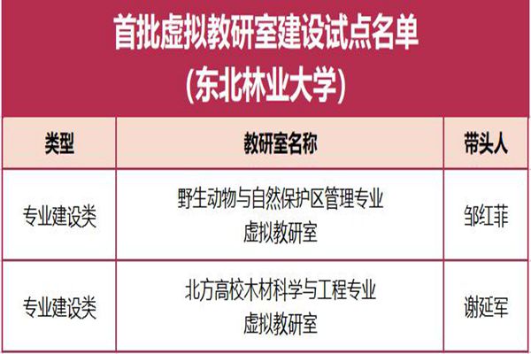 黑龍江經濟網訊(黑龍江日報全媒體見習記者董廣碩 商祺)近日,教育部公布了首批虛擬教研室建設試點名單,東北林業(yè)大學野生動物與自然保護區(qū)管理專業(yè)虛擬教研室、北方高校木材科學與工程專業(yè)虛擬教研室獲批首批虛擬教研室建設試點。