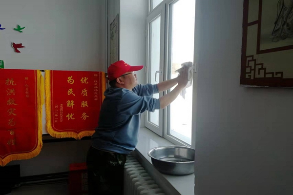 活動中,志愿者們分兵兩路,一路手持掃帚、鐵锨,對場區(qū)周邊垃圾、雜物、冰雪進行清理,另一路志愿者們手持掃帚、抹布、墩布等清潔用具紛紛投入到室內衛(wèi)生清潔服務活動,大家從屋頂?shù)降孛?、從桌面到床鋪、從餐廳到洗漱間來了一次全方位無死角的大掃除,利用一個上午的時間,還原了一個干凈整潔的辦公生活環(huán)境。