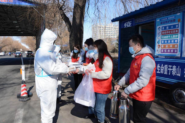 樺川縣稅務(wù)局組成青年志愿服務(wù)隊,攜帶保溫杯、熱水、水果等慰問品,深入樺川縣入口防疫卡點,慰問堅守在疫情防控一線的工作人員。青年志愿者們詳細(xì)詢問卡點防寒保暖、飲食安排等情況,對他們舍小家為大家、無私奉獻(xiàn)、敢于擔(dān)當(dāng)?shù)木窠o予高度贊揚(yáng),向他們送去關(guān)心和問候,叮囑他們做好自身防護(hù),合理安排休息時間。