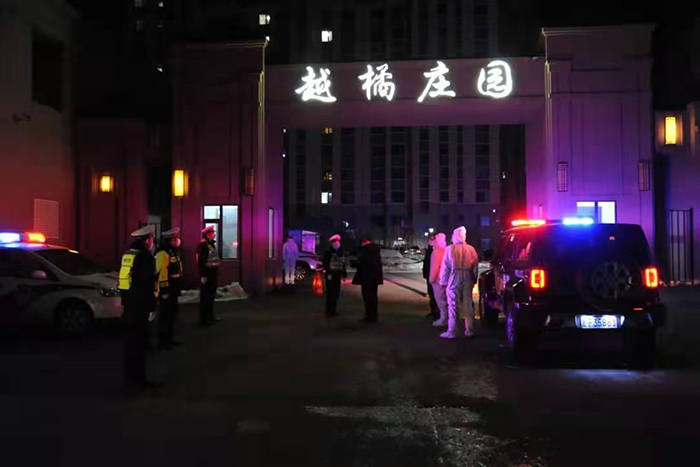 晚8時55分,南越橘莊園小區(qū)北門前警燈閃爍,小區(qū)內點點燈火。9名伊美區(qū)交警大隊民警、14名治安大隊民警在卡口靜靜值守。初春的林城乍暖還寒,按照防控要求,他們24小時在這里堅守。在冷冽的春風中,他們已經值守了一整天,檢查進入車輛100余臺次,餓了吃口盒飯,渴了喝一口礦泉水……民警劉慶凱、陳剛表示,為了百姓的安全,他們隨時在崗。