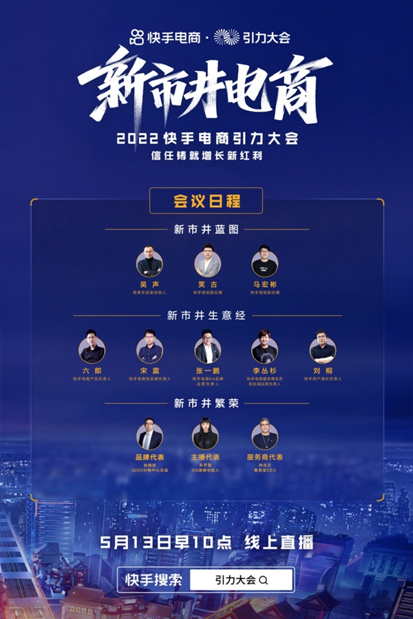 2022年快手電商引力大會于5月13日上午10點在北京舉行。2022快手電商引力大會議程包括新市井藍圖、新市井生意經(jīng)、新市井繁榮三大篇章。