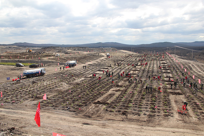 黑龍江經濟網訊(李云田 記者馬朝林)為努力改善礦區(qū)生態(tài)環(huán)境,增強廣大職工群眾愛護環(huán)境、保護環(huán)境意識。近日,古蓮河露天煤礦開展了以“義務植樹添新綠 共建美麗新礦區(qū)”為主題的義務植樹活動。大興安嶺林業(yè)集團公司黨委書記于輝,集團黨委常委、副總經理劉志現(xiàn)場參與、指導此次活動。集團生態(tài)修復管理處處長劉繼明,副處長秦世立、楊菲,古蓮河露天煤礦黨委書記侯振坤等領導班子成員和廣大干部職工300余人參加植樹。