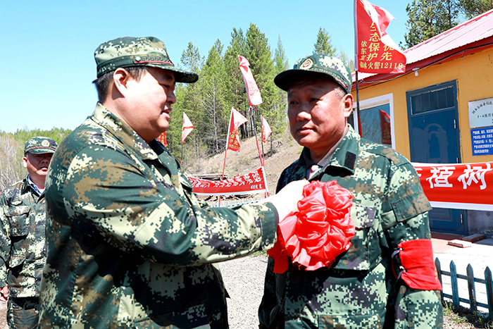 正當(dāng)滿德江依依不舍之際,林業(yè)局黨委書記胡守慶等領(lǐng)導(dǎo)來到管護站,為其佩戴“光榮花”和黨徽,并贈送了禮物,向一名老黨員表達了最高的敬意。