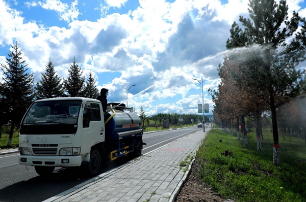 阿木爾林業(yè)局病防站利用噴霧車對(duì)樟子松綠化樹(shù)木進(jìn)行病蟲(chóng)害防治(王力 攝)