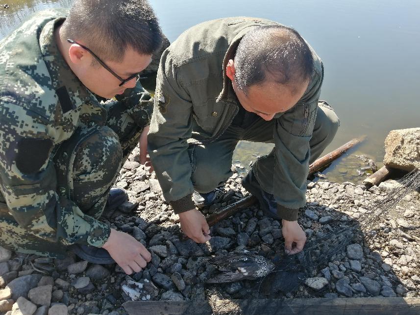 圖強(qiáng)林業(yè)局森林資源管理科工作人員在壯林林場施業(yè)區(qū)檢查工作時,發(fā)現(xiàn)一只綠翅鴨被粘網(wǎng)粘住,資源科工作人員對其展開營救。