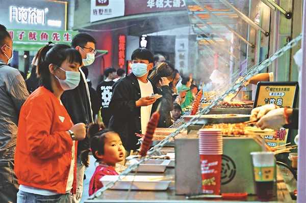 這邊,“向陽情懷”燈光夜市上,誘人的美食香味向過往的人們發(fā)出邀請,啤酒廣場舞臺上樂隊正在為游戲環(huán)節(jié)做預熱,一場視覺盛宴讓市民又多了一個好去處。那邊,“后備箱集市”讓市井味搭上“文藝風”,城市夜景與燒烤元素碰撞,人潮熙攘,很是熱鬧。