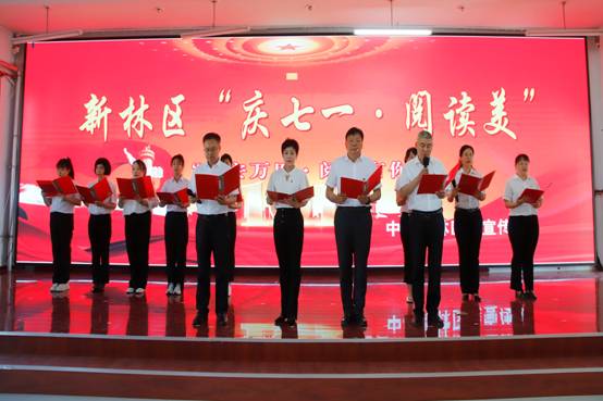 最后,由新林區(qū)處級領導干部帶來的詩朗誦《黨旗飄飄》,以激蕩澎湃的深情頌讀,展示了從空間到時間、從歷史到當前的壯闊畫面,抒發(fā)了心中對黨、對祖國的無限熱戀,表達了永遠追隨這面光榮旗幟的錚錚誓言和堅定決心。聽得在場人員心潮澎湃,感慨萬千。新林區(qū)將繼續(xù)拓展“興安萬里·閱讀有你”全民閱讀活動,讓越來越多新林人愛上閱讀,為新林區(qū)轉(zhuǎn)型振興發(fā)展增添強大精神動力,以新林努力、新林有為、新林貢獻的優(yōu)異成績迎接黨的二十大勝利召開。