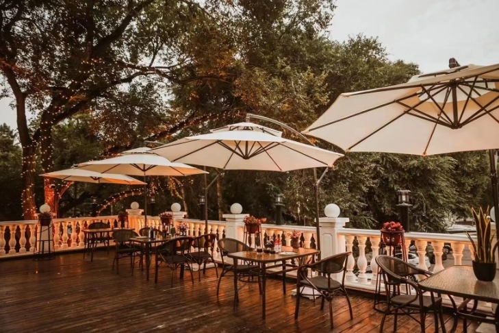 如今,江畔的游人發(fā)現(xiàn),這座百年機(jī)車庫(kù)已經(jīng)“敞開(kāi)心扉“,向大家展露它靚麗的容顏。昔日的圍欄內(nèi),機(jī)車庫(kù)的主體變成了一座精致的西餐廳——1902俄式西餐廳。走進(jìn)機(jī)車庫(kù)變身的主大廳,恢弘的穹頂仿佛在向人們?cè)V說(shuō)著它百年的滄桑,大氣的歐陸裝飾仿佛在宣告它未來(lái)的輝煌。