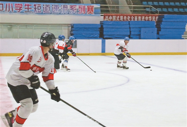 快速走位、高速滑行、靈活運球、有力射門……佳木斯市滑冰館內(nèi),冰球隊員們正在緊張集訓,備戰(zhàn)省運會和全國錦標賽。