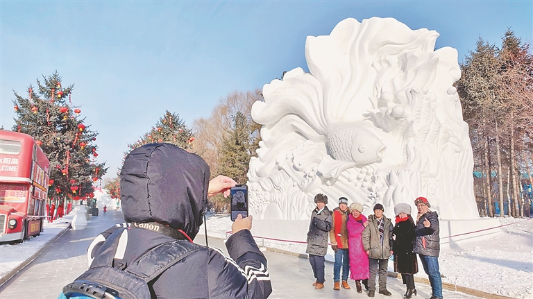 本報(bào)訊(記者 蔣國紅)“這個(gè)魚雕得太好看了,快給我拍張照!”在第35屆中國·哈爾濱太陽島國際雪雕藝術(shù)博覽會(huì)現(xiàn)場(chǎng),游人或乘坐電瓶車,或徒步欣賞著美麗的雪塑盛宴。
