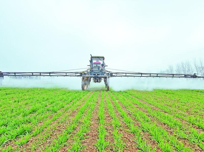小麥返青,植保作業(yè)正當(dāng)時(shí)。在亳州市譙城區(qū)聶紅偉合作社的麥田旁,工作人員正在調(diào)試自走式打藥機(jī),準(zhǔn)備噴施除草劑?!斑@個(gè)‘大塊頭’一次可以裝2000斤的藥液,一天可以打上1000畝地。”合作社負(fù)責(zé)人聶紅偉告訴記者,通過發(fā)展訂單農(nóng)業(yè),合作社帶動(dòng)周邊農(nóng)戶種植小麥4萬畝。合作社現(xiàn)有各式農(nóng)機(jī)60余臺(tái),可以為農(nóng)戶提供耕種收等全程機(jī)械化服務(wù),農(nóng)戶每畝地產(chǎn)量可提升50斤至80斤,通過農(nóng)資農(nóng)服降本增效,農(nóng)戶畝均效益提高三四百元。