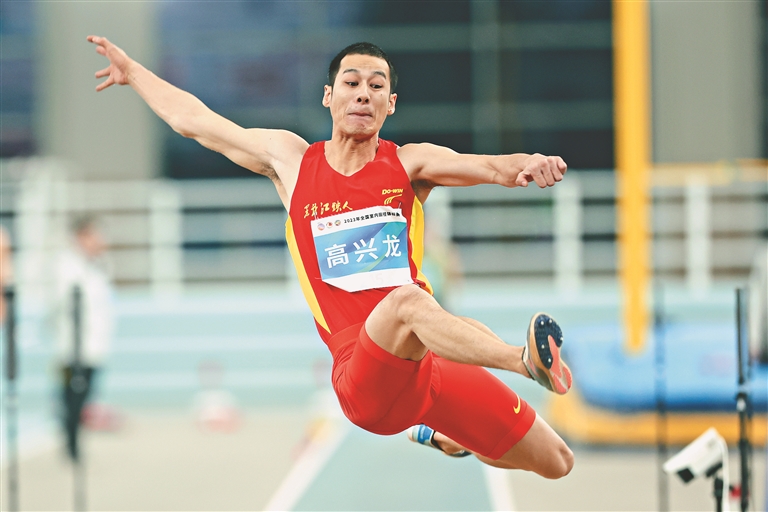 本報(bào)訊(記者楊鐳)15日,在天津舉行的2023年全國室內(nèi)田徑錦標(biāo)賽男子跳遠(yuǎn)決賽中,我省名將高興龍擊敗世界冠軍王嘉男,將金牌收入囊中。此外,在16日上午的比賽中,00后小將高艷琪又在女子三級(jí)跳遠(yuǎn)比賽中為黑龍江隊(duì)奪得一枚寶貴的銀牌。
