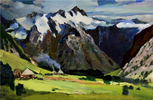 奧依塔克雪山下的家園 100cm×150cm 2017年