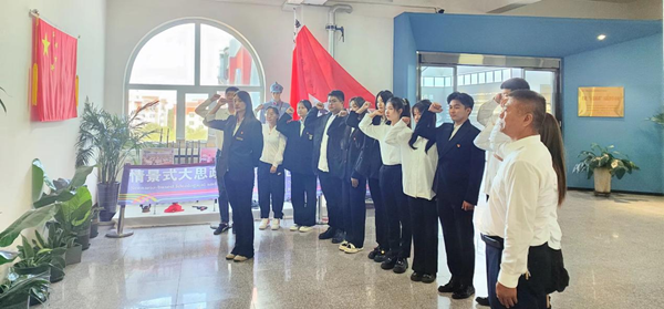 在課程結(jié)束之際,少先隊(duì)員發(fā)出了“勿忘國(guó)恥 吾輩自強(qiáng)”的錚錚誓言;黑龍江外國(guó)語(yǔ)學(xué)院藝術(shù)系輔導(dǎo)員張博雅帶領(lǐng)在場(chǎng)全體黨員重溫了入黨誓詞。短短的十二句話,道出了中國(guó)共產(chǎn)黨的百年奮斗歷程,凝聚著每一名黨員不忘初心、堅(jiān)守理想的信念與力量。面對(duì)黨旗,全體黨員莊嚴(yán)地舉起右拳宣誓,表達(dá)了矢志不渝跟黨走的決心和勇?lián)姑⒉回?fù)黨恩的堅(jiān)定信念。