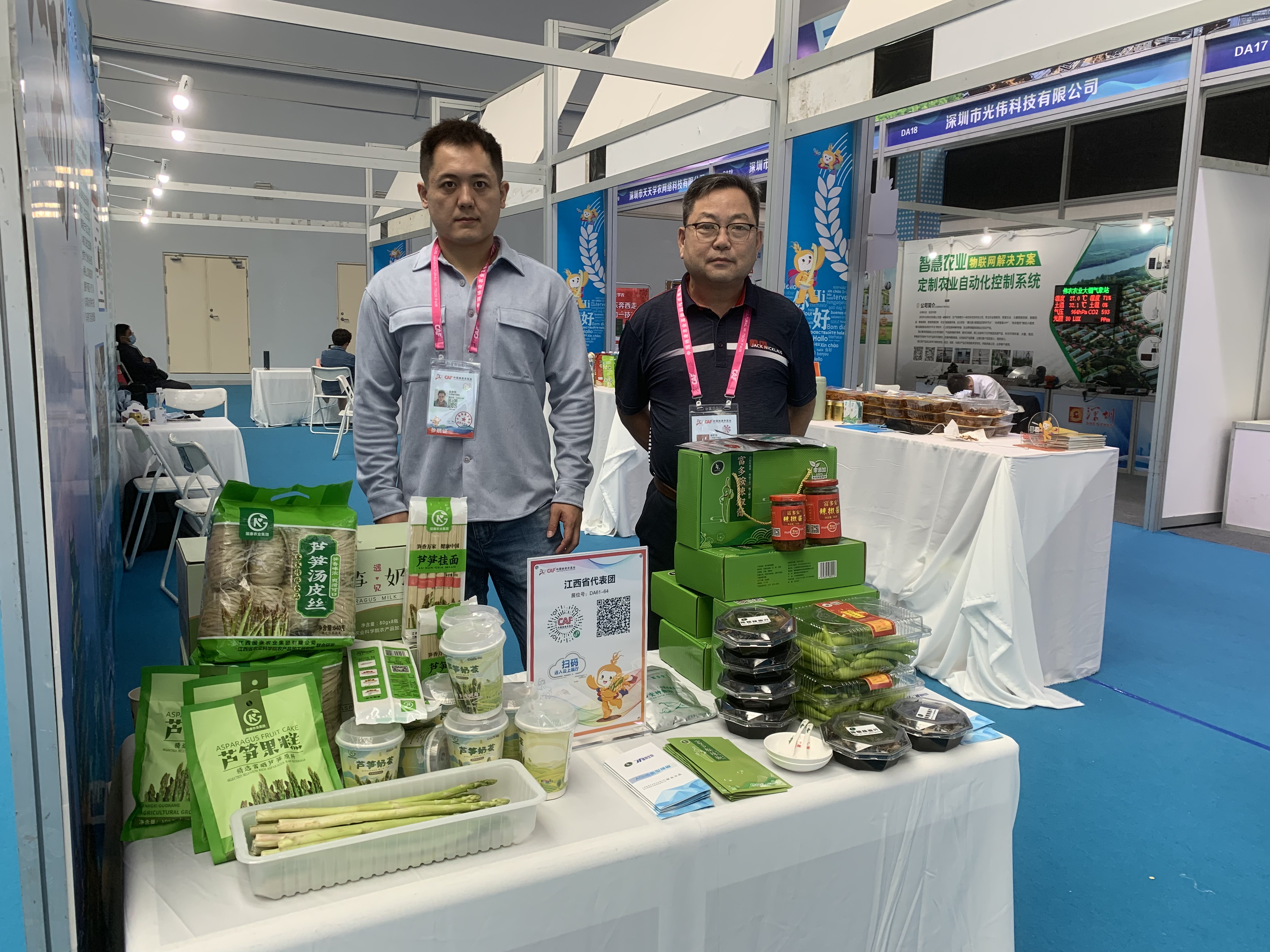 哈爾濱健特生物科技有限公司總經(jīng)理吳哲雄(右)帶領(lǐng)團(tuán)隊(duì)參展