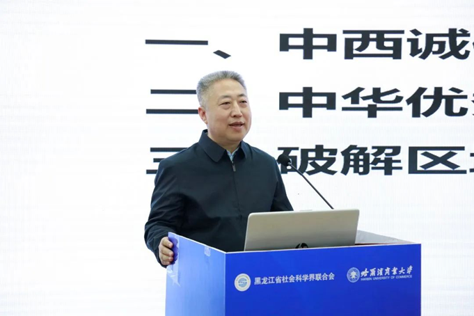 哈爾濱商業(yè)大學(xué)黨委書記孫先民致歡迎辭。他介紹了學(xué)校70余年辦學(xué)治校積累的豐富經(jīng)驗(yàn)和豐碩成果,指出學(xué)校充分發(fā)揮學(xué)科專業(yè)研究方向及特色優(yōu)勢(shì),在服務(wù)社會(huì)信用體系構(gòu)建、助力社會(huì)信用環(huán)境和營(yíng)商環(huán)境優(yōu)化、服務(wù)新時(shí)代文明實(shí)踐、帶動(dòng)全社會(huì)道德素質(zhì)和文明程度提升、服務(wù)商業(yè)模式實(shí)踐與創(chuàng)新、切實(shí)擔(dān)負(fù)起服務(wù)國(guó)家戰(zhàn)略、助力龍江發(fā)展的時(shí)代使命等方面取得了成果成效。