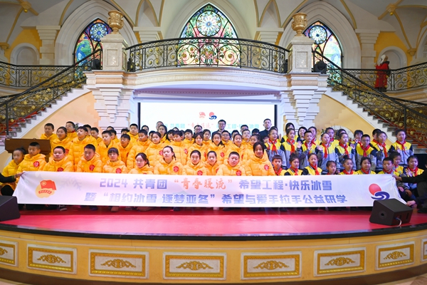 黑龍江經濟網訊(于佳弘 記者祝東)1月15日,2024共青團“青春暖流”希望工程·快樂冰雪暨“相約冰雪 逐夢亞冬”希望與愛手拉手公益研學正式開營?;顒佑芍袊嗌倌臧l(fā)展基金會、共青團黑龍江省委員會指導,黑龍江省青少年發(fā)展基金會、黑龍江省學生聯(lián)合會、少先隊黑龍江省工作委員會主辦,并得到了哈爾濱工程大學、哈爾濱工業(yè)大學教育發(fā)展基金會、黑龍江飛鶴乳業(yè)有限公司、哈爾濱伏爾加莊園文化旅游有限公司、哈爾濱市太陽島風景區(qū)資產有限公司、黑龍江龍塔國際旅游有限公司、聯(lián)想(北京)有限公司、黑龍江省明悅網絡科技有限公司的大力支持。共青團黑龍江省委副書記代東力,黑龍江省飛鶴慈善基金會秘書長蘭天偉,哈爾濱工程大學團委書記、本科生院黨委書記郝琛,共青團雙鴨山市委書記薛麗偉,黑龍江省青少年發(fā)展基金會理事長杜晶等領導嘉賓出席活動,雙鴨山“小黃鴨”與帶隊教師、公安干警、龍江小記者、哈爾濱學生代表共計百余人參加活動。