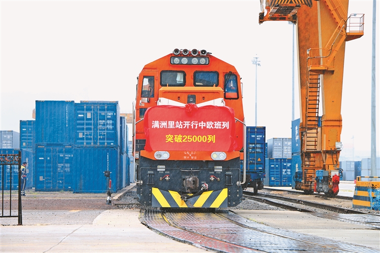 滿洲里是我國最大的陸路邊境口岸城市,經由滿洲里鐵路口岸通行的中歐班列約占全國口岸通行總量的三成。隨著共建“一帶一路”倡議的深入推進,中歐班列跑出高質量發(fā)展的新速度,數(shù)據顯示,自2013年中歐班列首次經由滿洲里鐵路口岸開行以來,該口岸中歐班列通行量達到10000列用時超過7年,而從10000列到25000列僅用了三年時間,2023年滿洲里鐵路口岸年通行量首次突破5000列,班列通行量、貨物運送量連續(xù)10年實現(xiàn)增長。