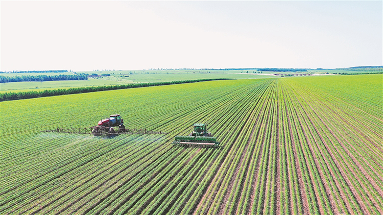 當下,正值玉米、大豆生長的關鍵時期,為克服前期低溫多雨天氣帶來的不利影響,北大荒集團各地積極進行夏管作業(yè),通過中耕追肥作業(yè),進一步疏松土壤提高地溫,為玉米、大豆的茁壯成長提供充足養(yǎng)分和優(yōu)良生長環(huán)境。