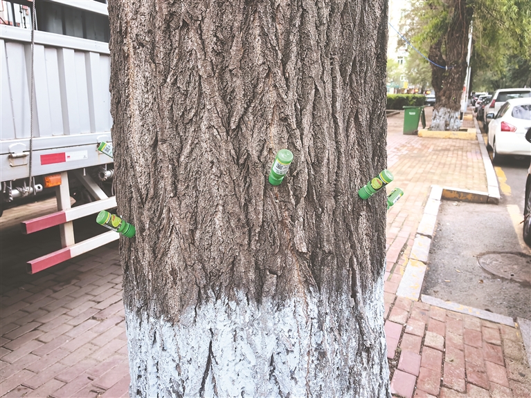 已“打針”的楊樹(shù)。本報(bào)記者 劉瑞攝