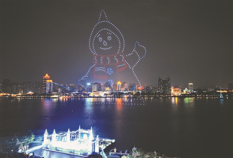 6月29日,松花江上的大型實景演出《遇見·哈爾濱》在太陽島進(jìn)行了無人機(jī)表演。500架無人機(jī),編出大雪人、雪花摩天輪、速滑運(yùn)動員等十余個造型,讓冰城夏日的夜空分外璀璨迷人。 據(jù)悉,只要天氣允許,每晚的20時30分左右,在江南沿江地帶都可以觀賞到這一演出。