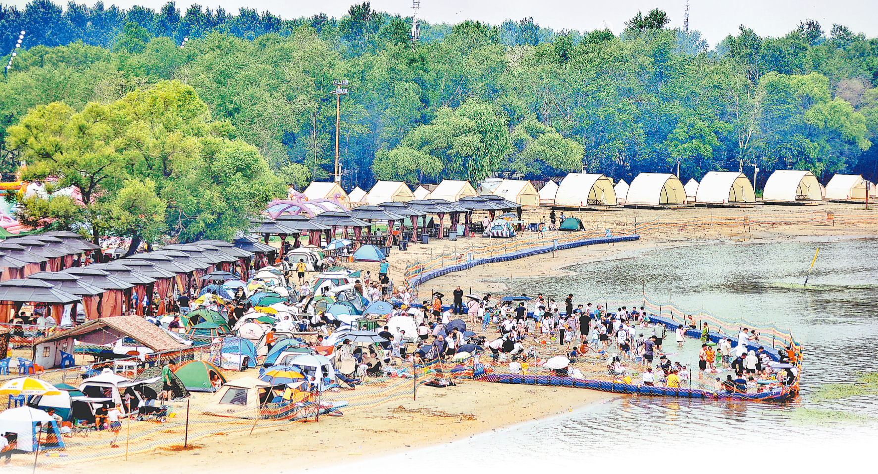 日前,哈爾濱市江北公路大橋附近的公益沙灘浴場內,許多市民帶著孩子在戲水納涼。這處沙灘浴場面積有數(shù)百平方米,水中最深處只有半米多,周圍設置了隔離帶、安全網。孩子們盡情玩樂,有的在學游泳、有的玩水槍、有的在堆沙子、有的在挖“水渠”,叫喊聲、歡笑聲不絕于耳。