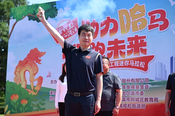 黑龍江經(jīng)濟(jì)網(wǎng)訊(王丹陽)為助力哈爾濱銀行2024哈爾濱馬拉松活動(dòng),增強(qiáng)“丁香綻放·童心港灣”項(xiàng)目凝聚力,提升兒童身體素質(zhì)和健康意識(shí),更好地感受運(yùn)動(dòng)的魅力,提高兒童對(duì)馬拉松運(yùn)動(dòng)的了解、認(rèn)識(shí)和興趣,讓兒童培養(yǎng)積極樂觀的生活態(tài)度,樹立頑強(qiáng)拼搏的意志品格,8月9日,“丁香綻放·童心港灣”“助力哈馬 迎跑未來”2024黑龍江省希望工程迷你馬拉松活動(dòng)在哈爾濱市阿城區(qū)金上京歷史博物館拉開帷幕。共青團(tuán)黑龍江省委副書記張濤,哈爾濱銀行黨委專職副書記張玉峰,中共哈爾濱市阿城區(qū)委副書記徐洪濤,黑龍江省青少年發(fā)展基金會(huì)理事長(zhǎng)杜晶,共青團(tuán)哈爾濱市委副書記劉婷婷,中共哈爾濱市阿城區(qū)委常委、宣傳部部長(zhǎng)周巍巍,哈爾濱市阿城區(qū)人民政府副區(qū)長(zhǎng)王殿友及阿城區(qū)團(tuán)委、阿城區(qū)教育局、阿城區(qū)文化體育廣播電視和旅游局相關(guān)領(lǐng)導(dǎo)嘉賓出席活動(dòng),童心港灣留守兒童、少年兒童代表共計(jì)百余人參賽。